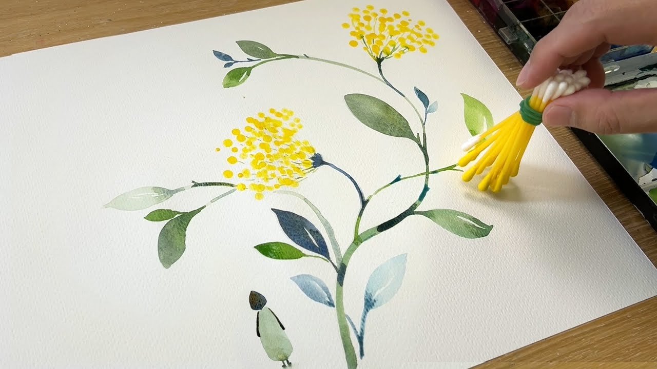 棉花棒繪畫技巧 / 黃色水彩畫